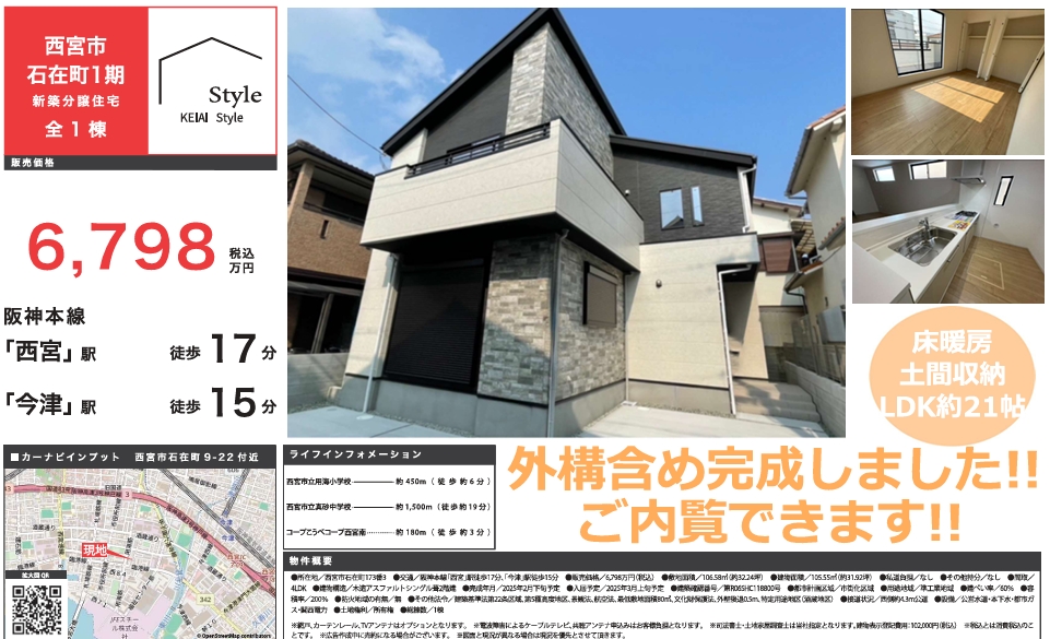 ご希望の方には、この「西宮市石在町・新築一戸建て」物件を当社の不動産サービス