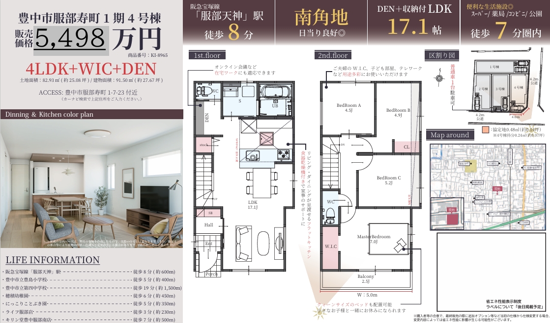 4LDK+WIC+DEN / 土地面積 82.93㎡(25.08坪)/ 建物面積 91.50㎡(27.67坪)