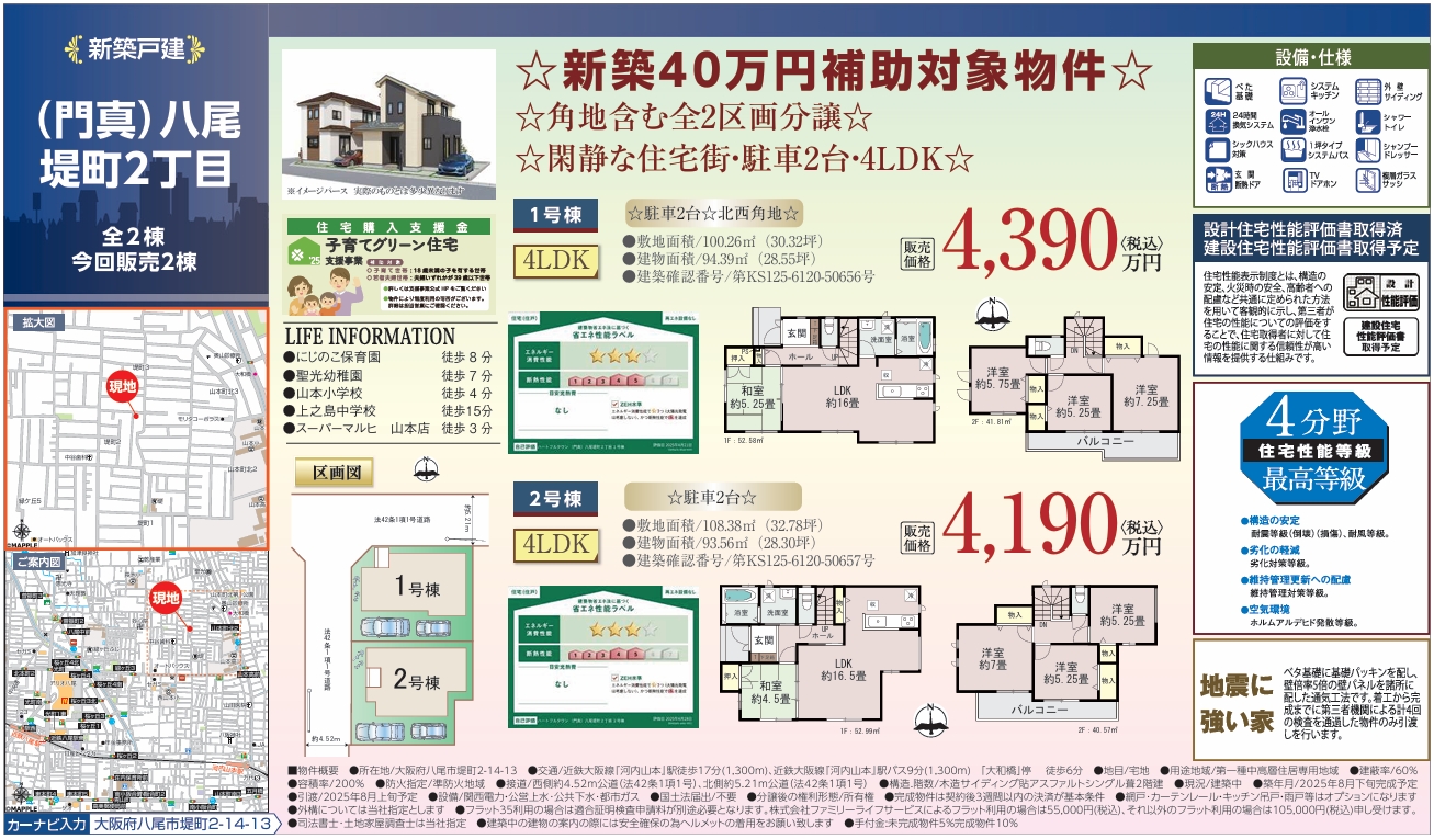 大阪府八尾市堤町 新築分譲住宅 ~ハートフルタウン~ 全2棟