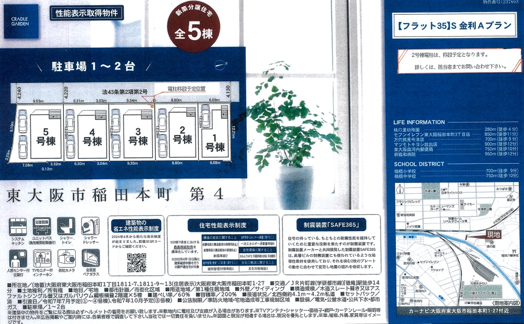 大阪府東大阪市稲田本町 新築分譲住宅 ~クレイドルガーデン~ 全5棟