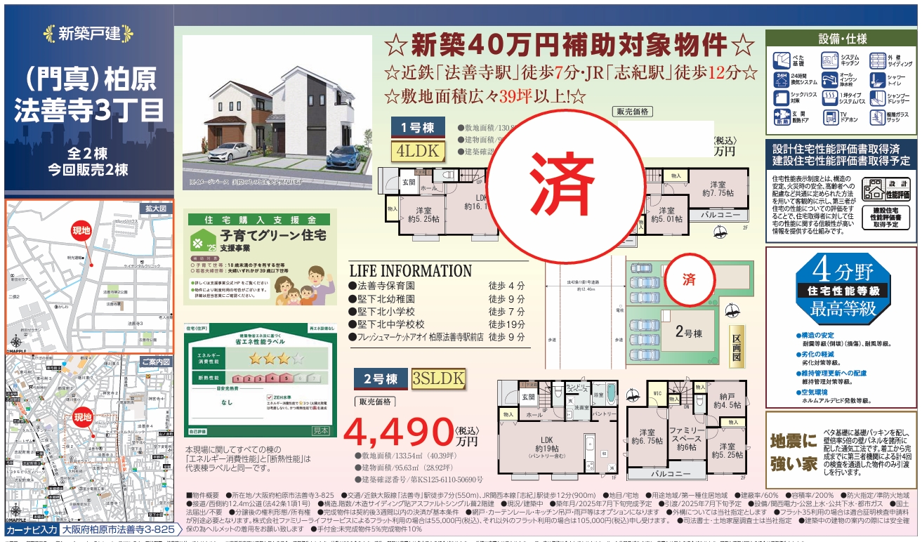 大阪府柏原市法善寺 新築分譲住宅 ~ハートフルタウン~ 全2棟