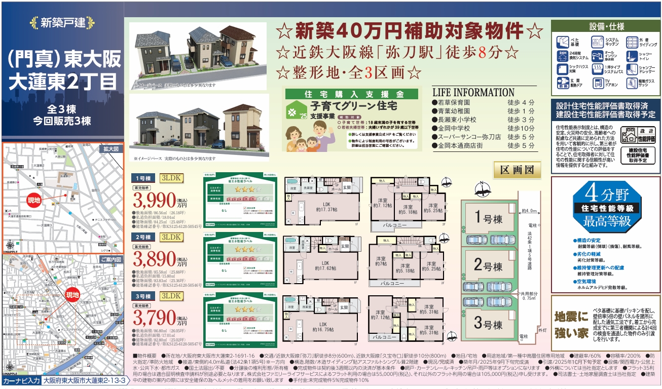 大阪府東大阪市大蓮東 新築分譲住宅 ~ハートフルタウン~ 全3棟