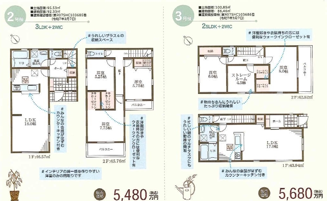 3LDK+2WIC / 土地面積 100.87㎡ / 建物面積 95.37㎡