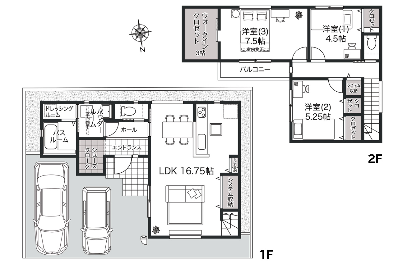 ⑴照明・カーテン・カーテンレールはオプション有料となります。