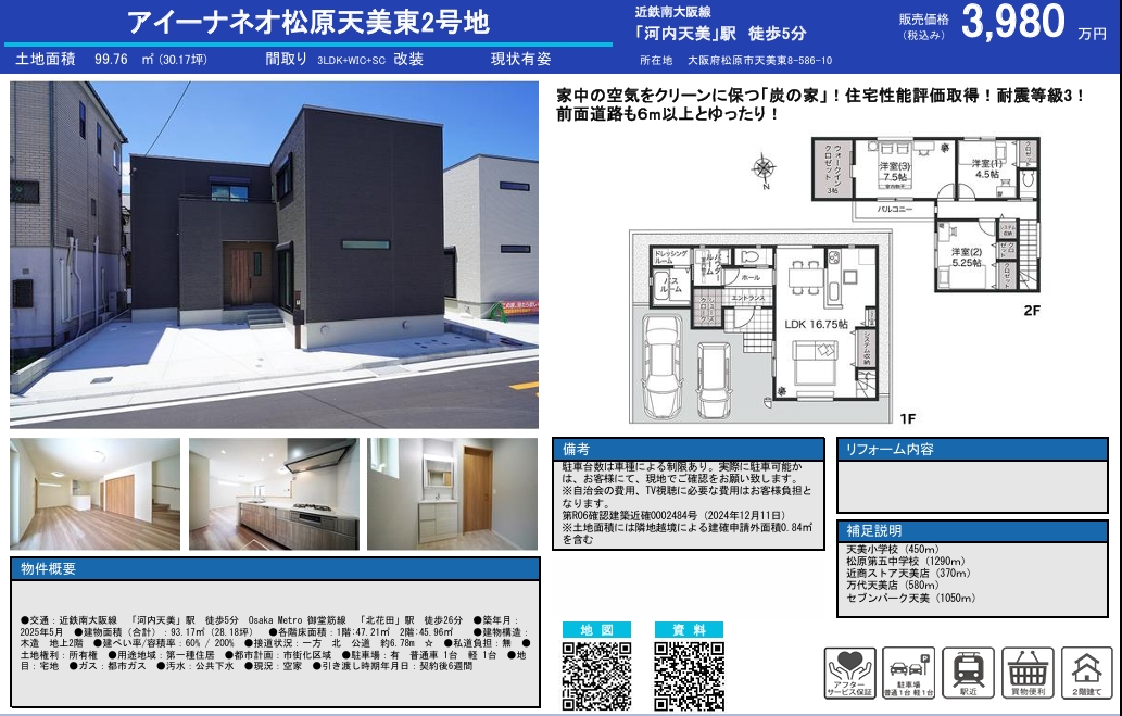 近鉄河内天美駅徒歩5分 駐車スペース2台 LDK16.75帖 炭の家 食洗機・浴室乾燥機 ウォークインクローゼット・シューズクローク アフターサービス保証 住宅性能評価書取得 仲介手数料無料で約133万円(税込)お得に