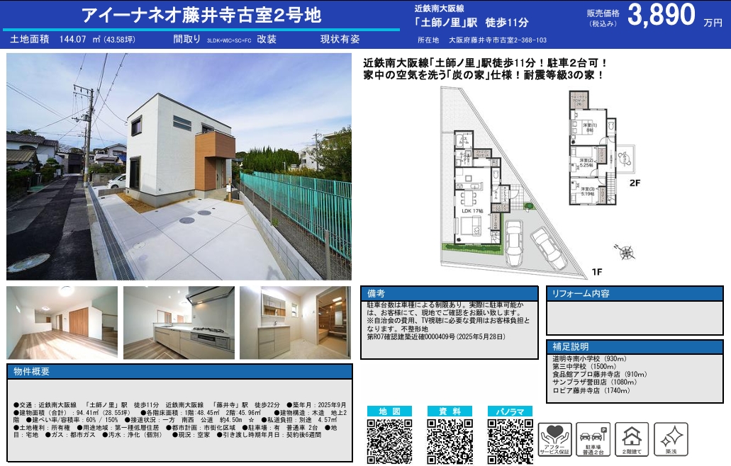 価格変更、藤井寺市古室、新築一戸建て・アイーナネオ☆仲介手数料無料でお得に購入