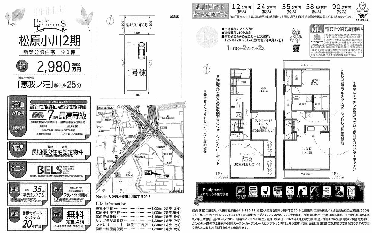 ご希望の方には、この「松原市小川5丁目・新築一戸建て」物件を当社の不動産サービス