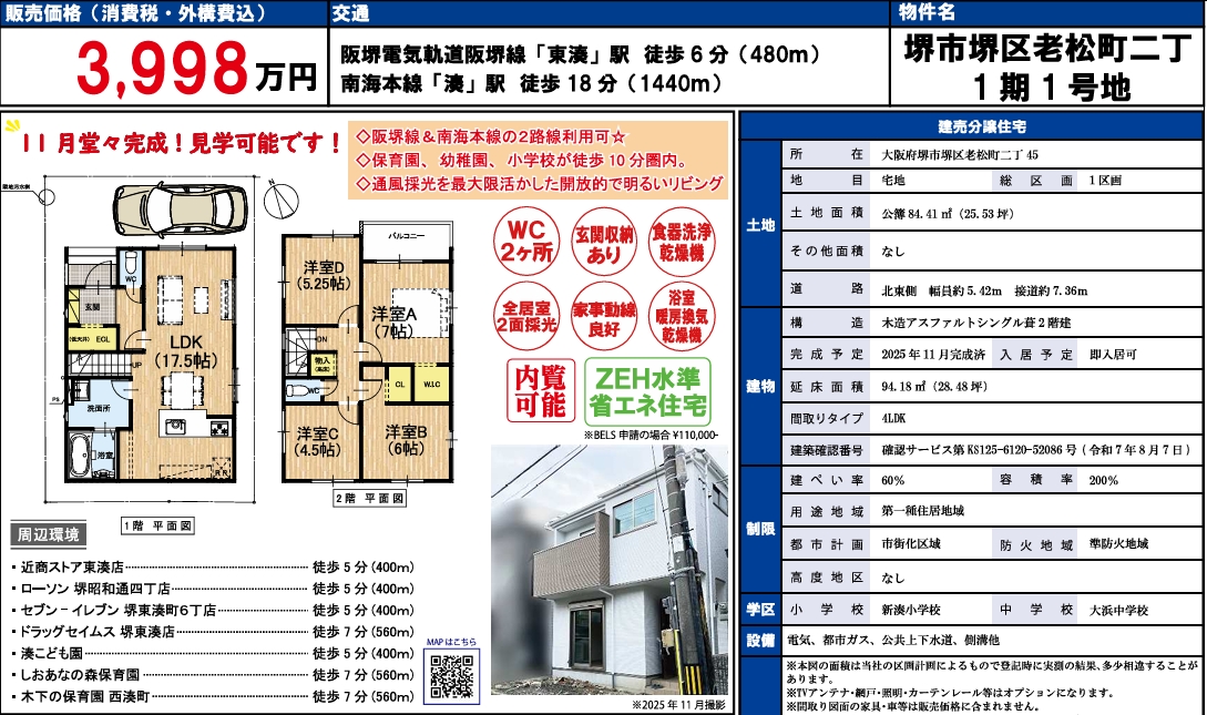 大阪府堺市堺区老松町 新築分譲住宅 全1棟
