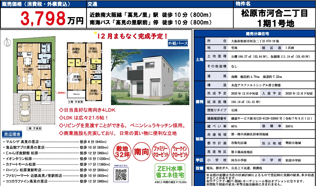 ご希望の方には、この「松原市河合2丁目・新築一戸建て」物件を当社の不動産サービス