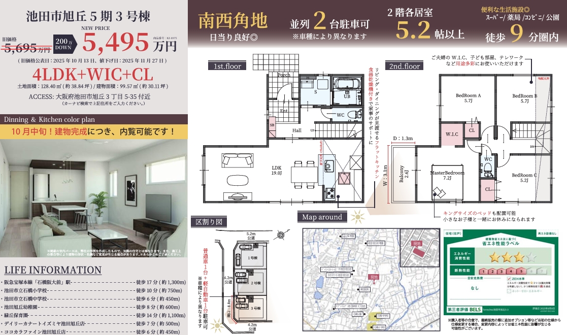 4LDK+WIC / 土地面積 128.40㎡(38.84坪)/ 建物面積 99.57㎡(30.11坪)