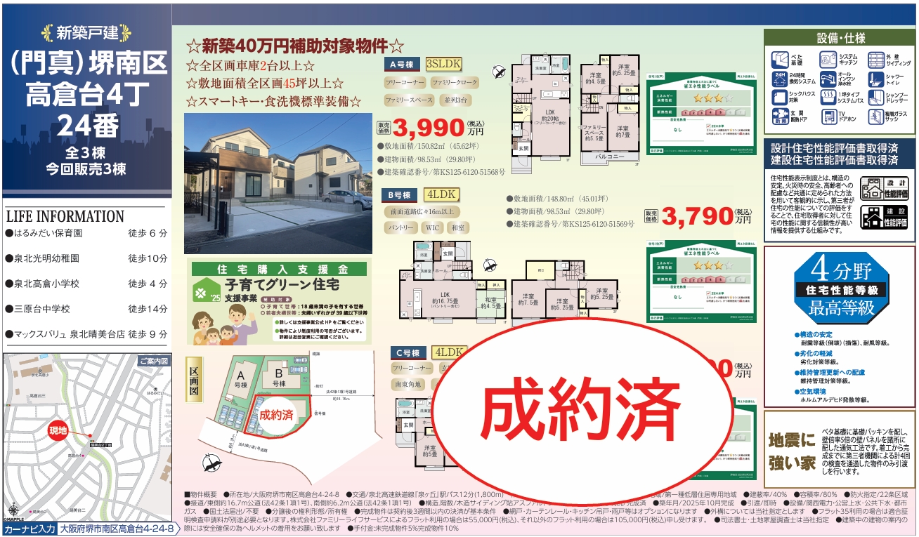 大阪府堺市南区高倉台 新築分譲住宅 ~ハートフルタウン~ 全3棟