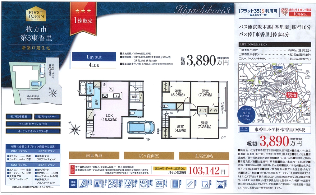 ご希望の方には、この「枚方市東香里3丁目・新築一戸建て」物件を当社の不動産サービス
