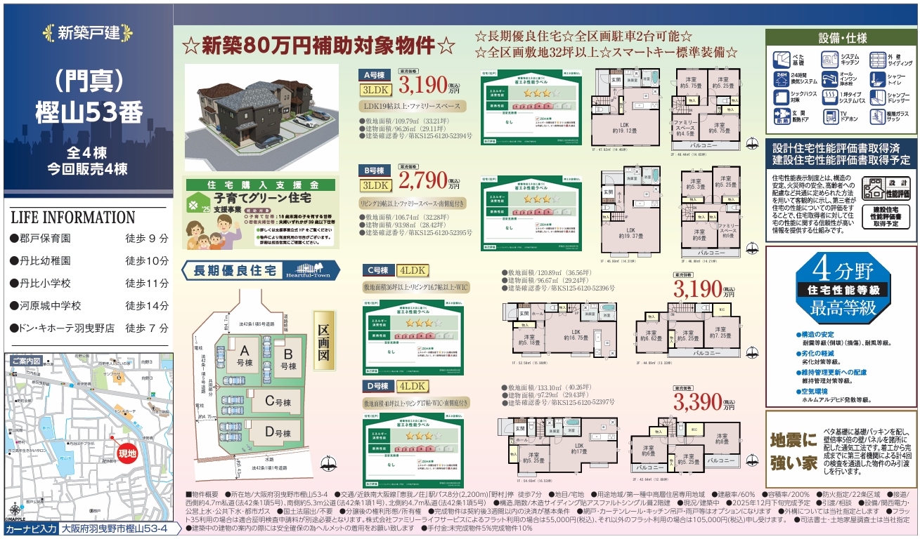 大阪府羽曳野市樫山 新築分譲住宅 ~ハートフルタウン~ 全4棟