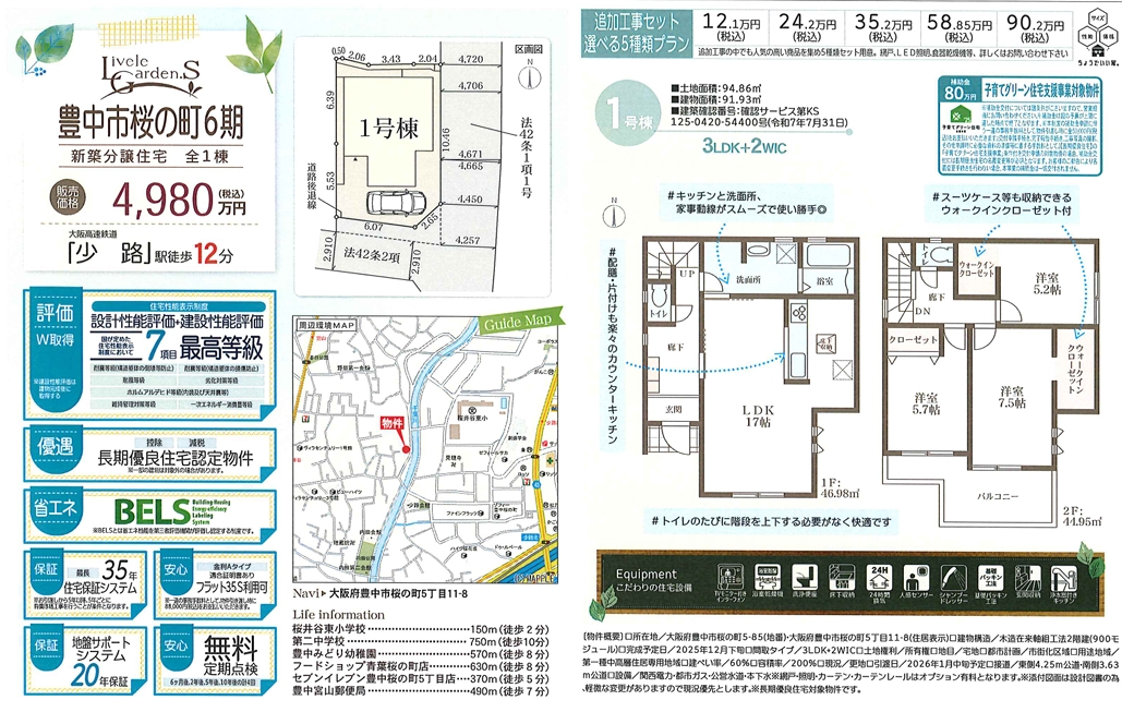 ご希望の方には、この「豊中市桜の町5丁目・新築一戸建て」物件を当社の不動産サービス