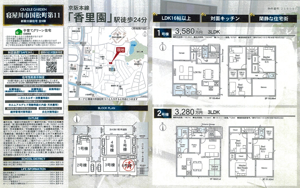 大阪府寝屋川市国松町 新築分譲住宅 ~クレイドルガーデン~ 全6棟