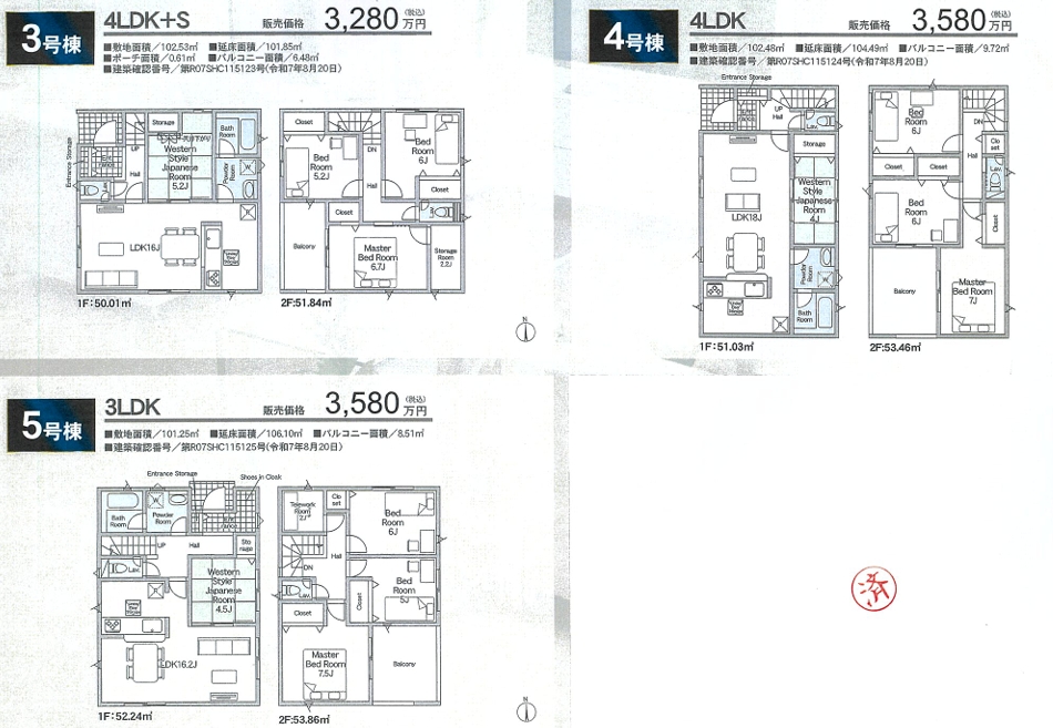 3LDK / 土地面積 101.96㎡ / 建物面積 108.54㎡