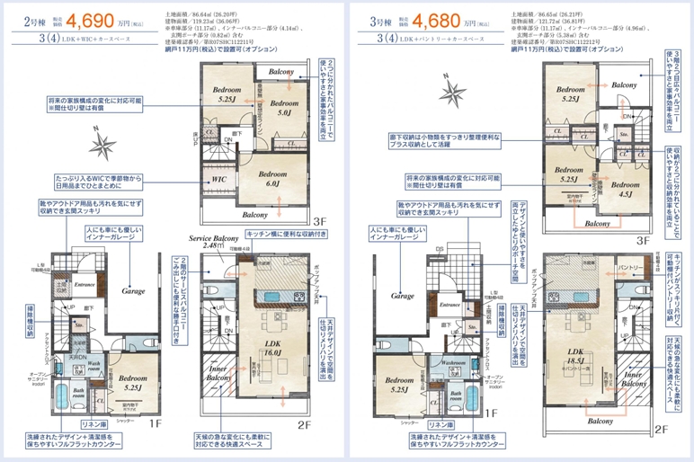 3(4)LDK / 土地面積 86.64㎡(26.20坪)/ 建物面積 119.23㎡(36.06坪)
