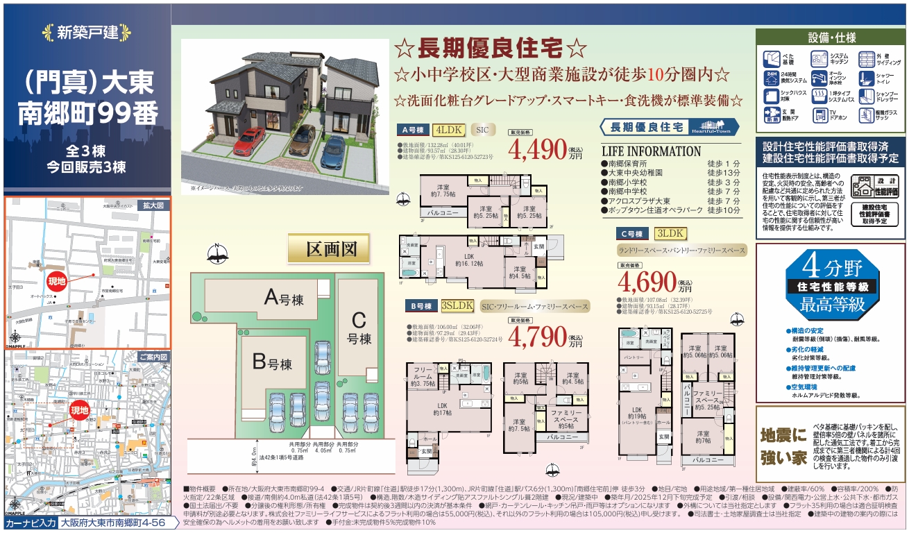 大阪府大東市南郷町 新築分譲住宅 ~ハートフルタウン~ 全3棟