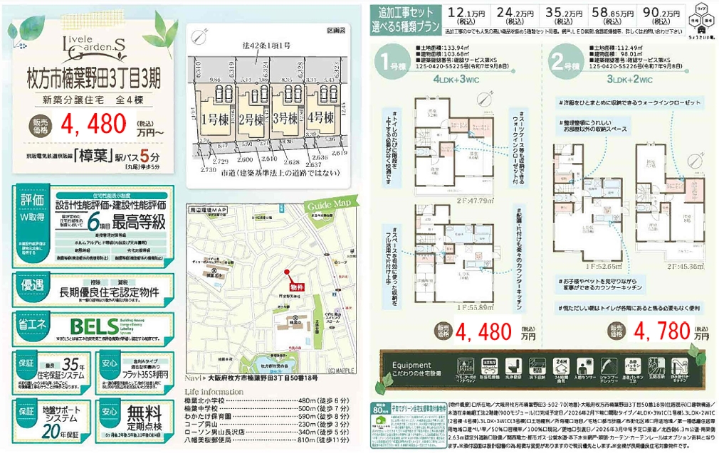 大阪府枚方市楠葉野田 新築分譲住宅 ~リーブルガーデン~ 全4棟