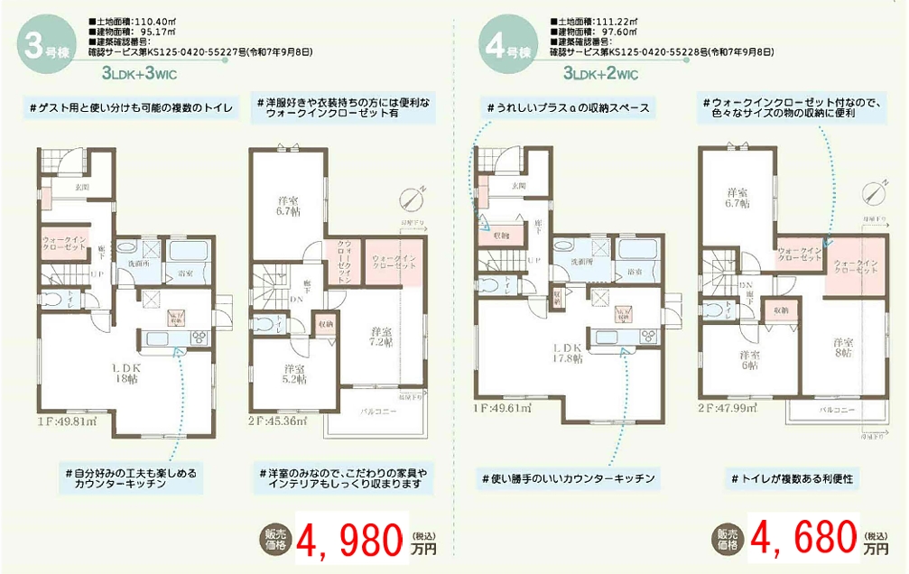 3LDK+2WIC / 土地面積 111.22㎡ / 建物面積 97.60㎡