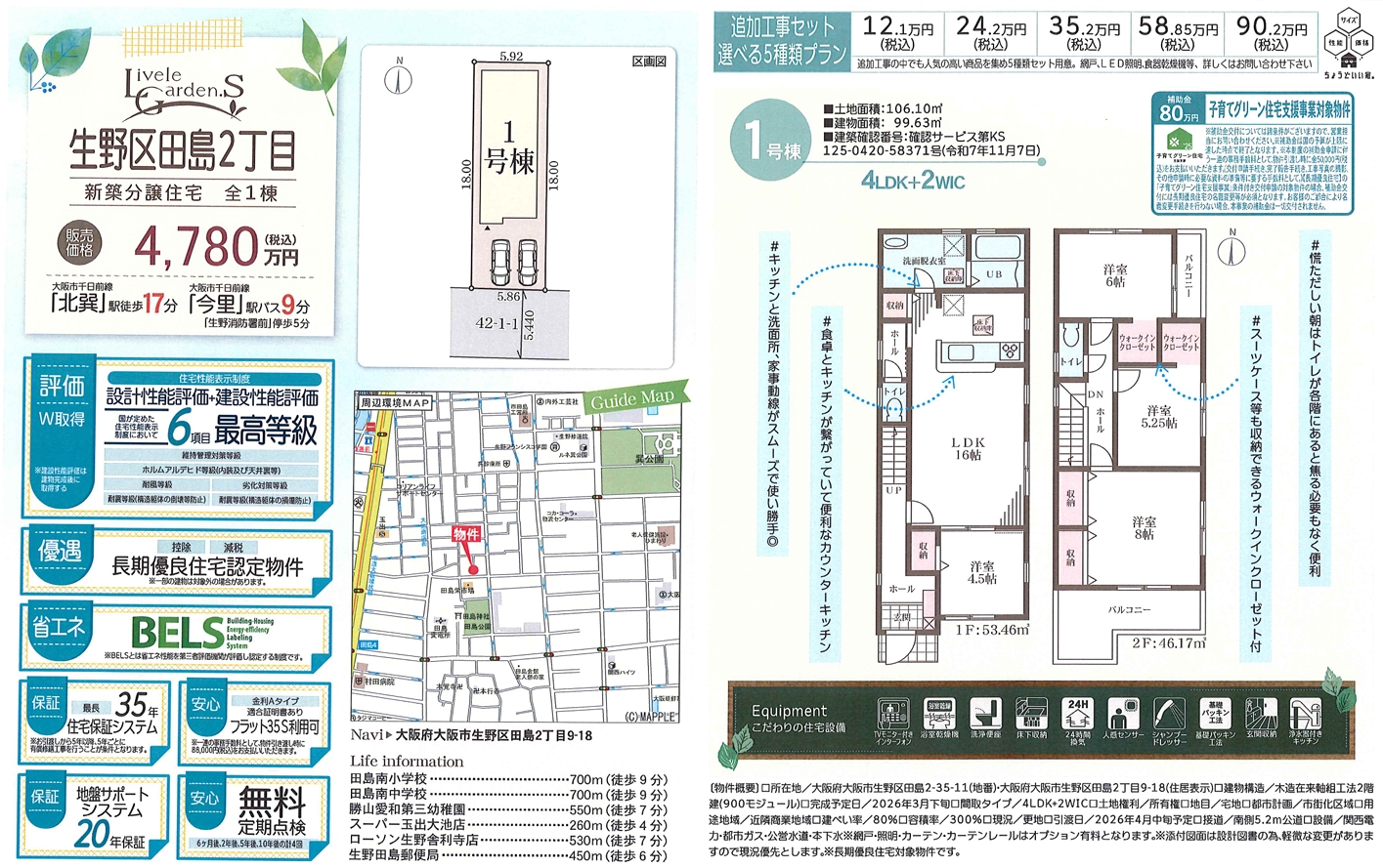 大阪市生野区田島2丁目 新築分譲住宅 ~リーブルガーデン~ 全1棟