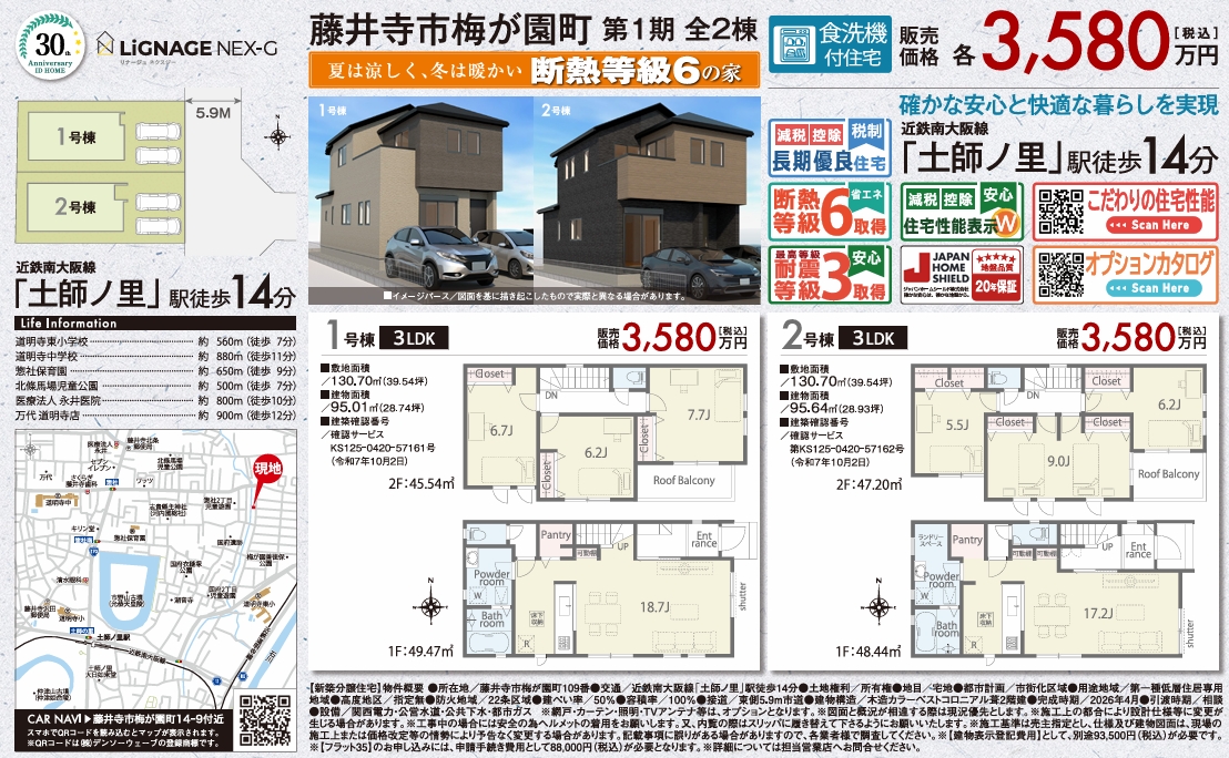 大阪府藤井寺市梅が園町 新築分譲住宅 ~リナージュ~ 全2棟