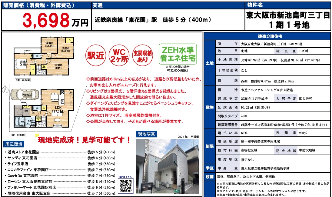 大阪府東大阪市新池島町 新築分譲住宅 全1棟