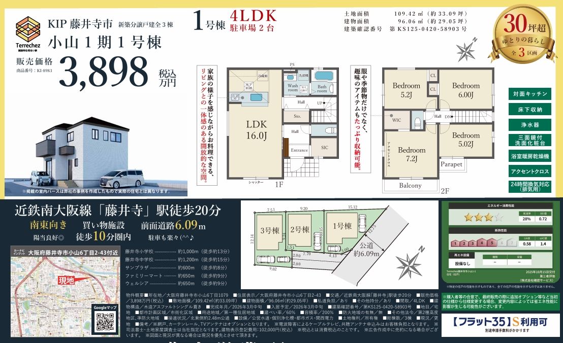 大阪府藤井寺市小山 新築分譲住宅 ~テラシエ~ 全3棟
