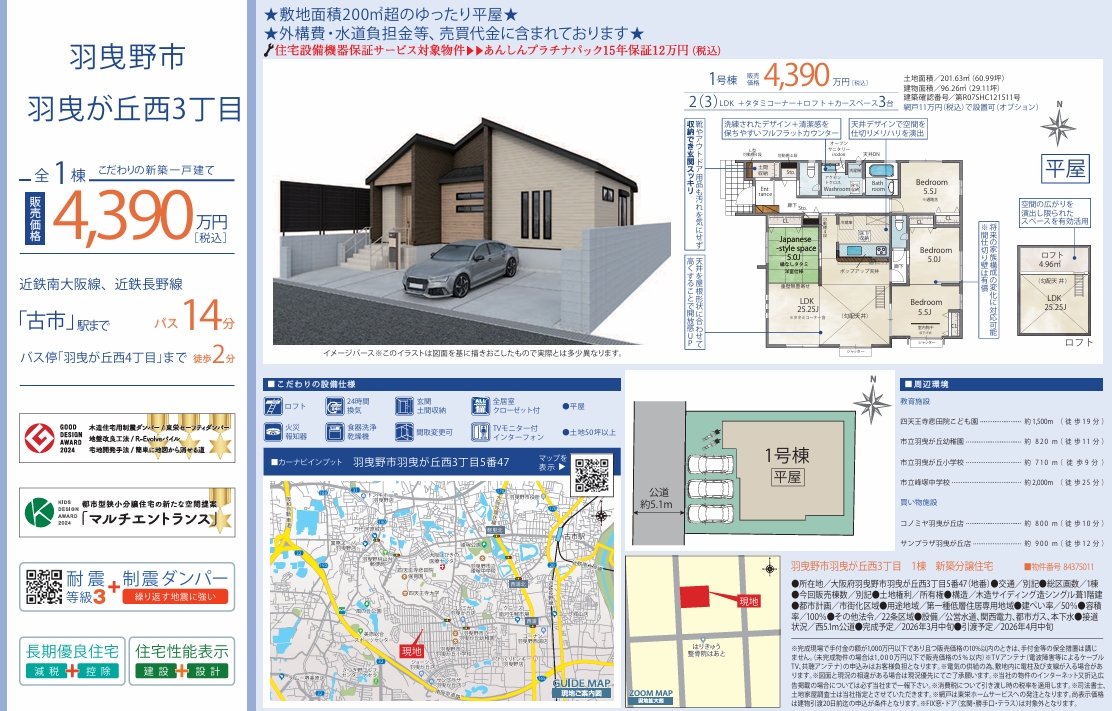 ご希望の方には、この「羽曳野市羽曳が丘西3丁目・新築一戸建て」物件を当社の不動産サービス