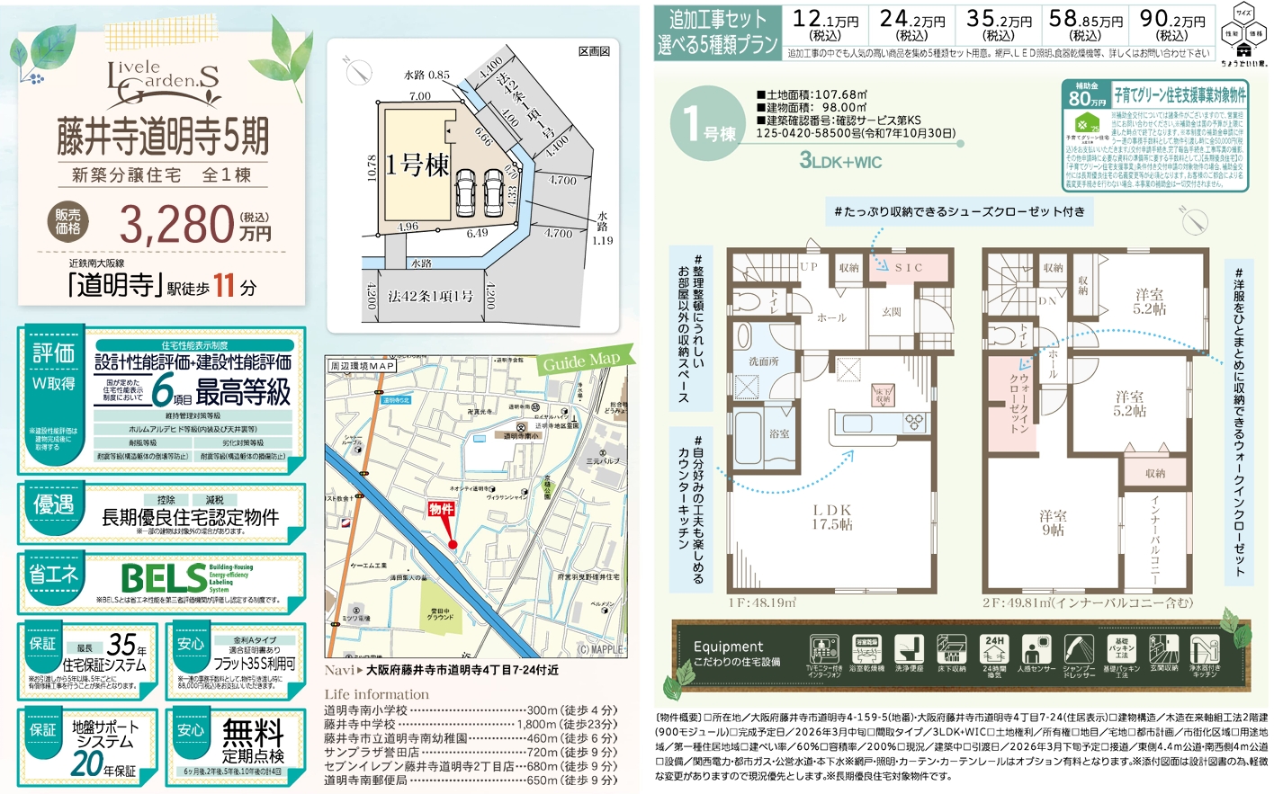 3LDK+WIC / 土地面積 107.68㎡ / 建物面積 98.00㎡